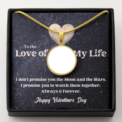 Photo Memory Circle Necklace - Moon and Stars - Valentine