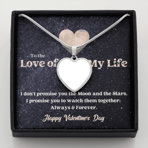 Photo Memory Heart Necklace - Moon and Stars - Valentine